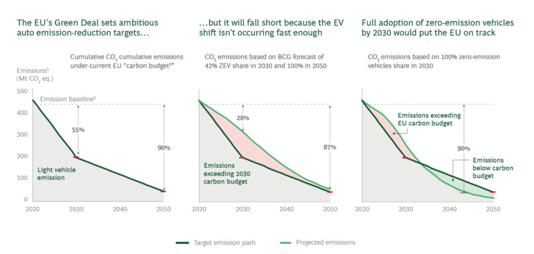 Amennyiben ez megtörténne, az EU autóparkja sokkal gyorsabban cserélődhetne le és évekkel korábban elérhetővé válna az előirányzott 90%-os célérték. A Boston Consulting Group anyagában ugyanakkor arra is felhívja a figyelmet, hogy egy ilyen radikális átállás hatalmas terhet jelentene az autóipar számára és a megvalósításnak komoly korlátjai lehetnek.
