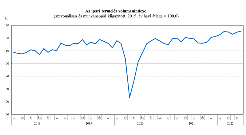 Az ipari termelés 2020 októberéig teljesen kilábalt a járvány okozta válságból, a további lendületes növekedést azonban a chiphiány fékezte, így a járvány előtti szint közelében, azt kissé meghaladó mértékben ingadozott az ipari termelés, ahonnan az idei év elején határozott lendületet vett, júniusban pedig új történelmi csúcsra ért. Júniusban a 2020. áprilisi mélyponthoz képest 71,1 százalékkal nőtt az ipari termelés. 2015. évi átlaghoz viszonyítva 25,4 százalékkal bővült az ipari termelés, míg 53,3 százalékkal haladja meg a 2010. évi átlagos termelési szintet. Tavaly összesen 9,6 százalékkal bővült az ipari termelés.