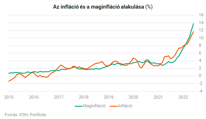 Viszont hirtelen leállni akkor sem lehet, hiszen az infláció várhatóan csak szeptember-októberben tetőzik majd, így az év végéig csökkenő tempóban fenn kell tartani az emeléseket. Virovácz Péter szerint az infláció csúcsa 16 százalék körül lehet, a kamatemelések pedig 14 százaléknál érhetnek véget.